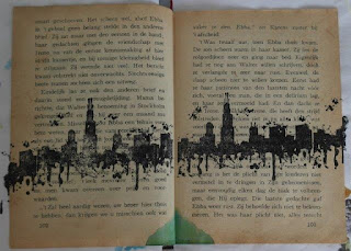 Ik stempel met zwart de tekst en tot slot teken ik met de dikke Posca een rand rondom de pagina's.